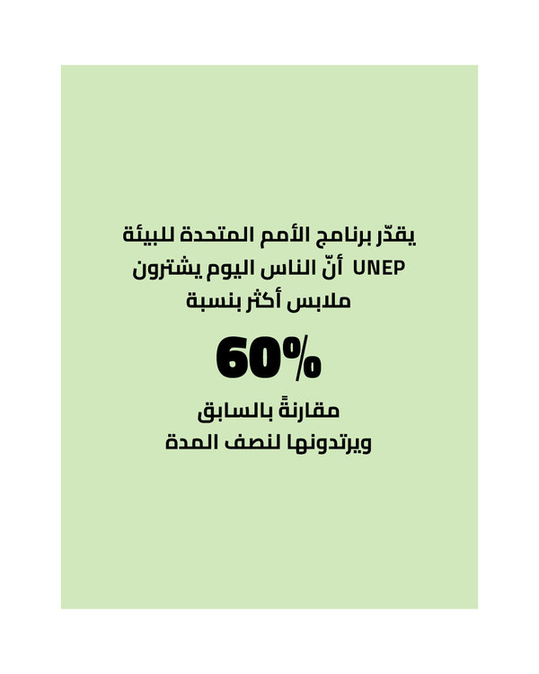 "يُسرع مستهلكو الأزياء السريعة في الاستغناء عن الملابس، إذ تشير التقديرات إلى أنّهم يعتبرون أنّ الملابس ذات الأسعار المنخفضة يمكن التخلص منها بعد ارتدائها 7 مرات فقط." – McKinsey & Company
