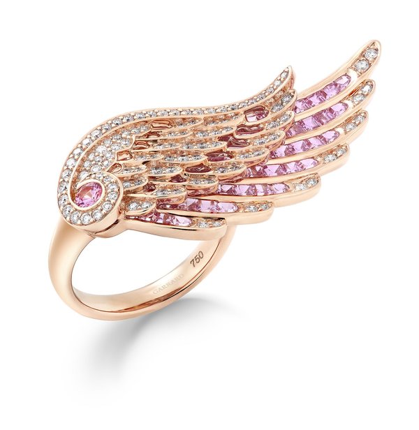 بمناسبة مرور 15 عاماً على إطلاق مجموعة Wings الأصلية، أطلقنا مجموعة Wings Embrace في العام الماضي بنسخات من الماس الأبيض والمعادن الملوّنة. ومن حيث الرمزيّة، تجذب هذه القطع الكثير من الجنسيّات المختلفة وتعتبر أحد الأشكال الأكثر تميّزاً لأنّها تحمل معنى السلام والطهارة والحماية. ونظراً إلى أنّ الأمور سارت بشكل جيد جداً العام الماضي، ارتأينا أن نضيف المزيد من الألوان إليها هذا العام. لذا، استخدمنا أحجاراً ملوّنة ناعمة وجميلة مثل الياقوت الوردي والأصفر، فبات لدينا مجموعة غنيّة تتناسب مع الكثير من ألوان البشرة.