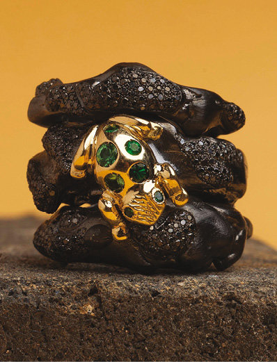 أحب استكشاف جميع أنواع المعادن والعمل بها. وأحب مزج معادن وتركيبات مختلفة في قطعة واحدة. فأعتقد أنّ ذلك يزيد من رونق القطعة وجماليتها. وعندما أطلقت المجموعة الأولى في العام 2015، كانت القطع مصنوعة من مادة البرونز المائل بلونه إلى الصدأ وغير اللامع، ومن الذهب عيار 18 قيراطاً، كما وأدخلت مادة الخشب على بعض القطع. وفي ذلك الوقت، لم يتقبّل الناس كثيراً فكرة المجوهرات الراقية المصنوعة من معادن مختلفة غير الذهب، إلا أن ذلك أثار فضولهم. واليوم تُصنّف هذه القطع التي أطلقتها من بين القطع الأكثر مبيعاً لديّ.