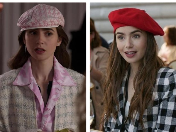 في مختلف إطلالتها، لاحظنا أن الشابة التي وجدت وظيفة أحلامها في باريس لم تتخل عن القبعة بكافة أشكالها. فالبيريه هي الأكسسوار الأبرز في إطلالتها بكافة ألوانها: الأحمر، الوردي المقلّم، الأسود…وكذلك قبعة الدلو!