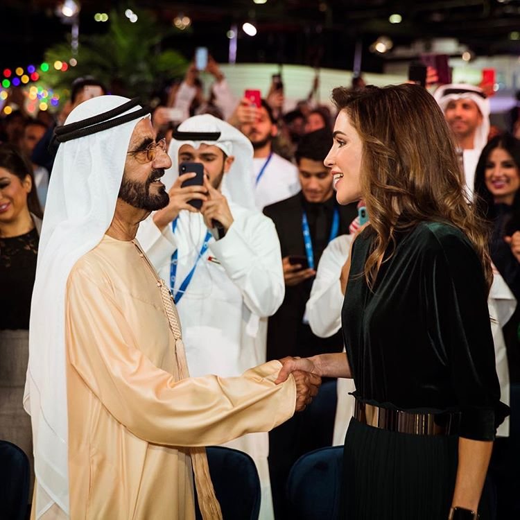 وبعد تسلمها الجائزة، ألقت ملكة الأردن كلمة عبّرت فيها عن سعادتها بالتواجد في دبي، مقدمة الشكر لحاكم دبي على هذا الملتقى الدولي.