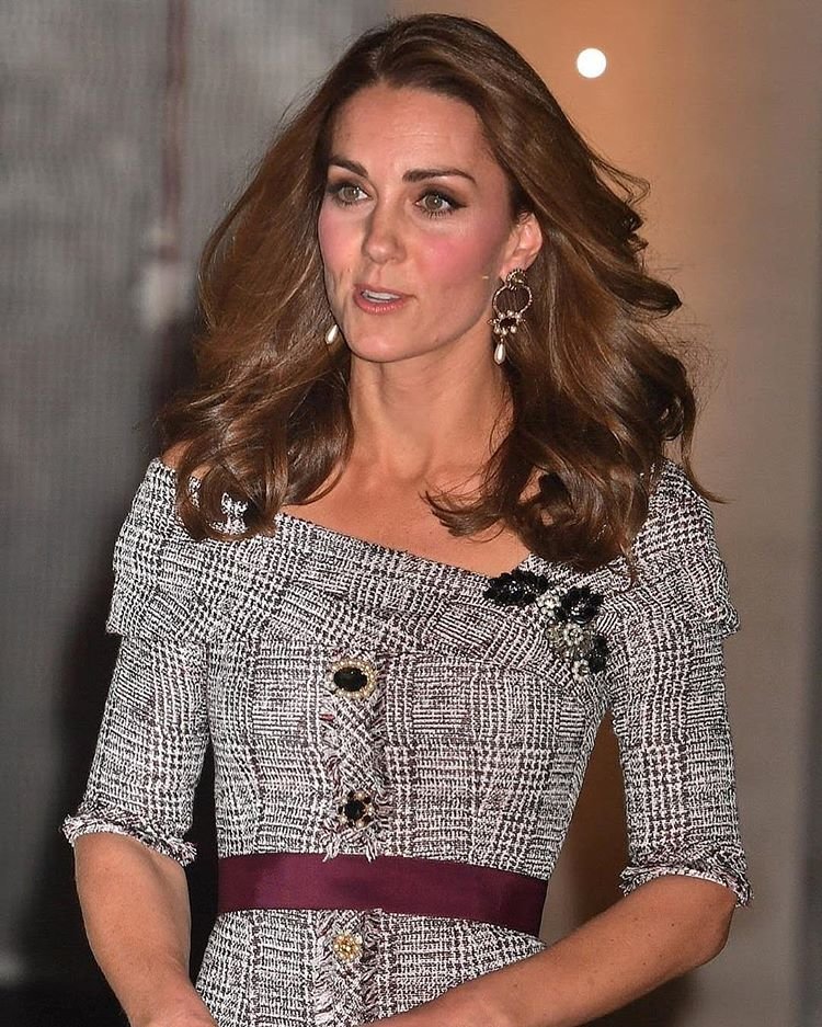 لطالما اعتدنا عليها أن ترتدي الملابس المحتشمة كالفساتين ذات القصات الكلاسيكية التي تصل إلى حدود الركبة ولكن في إطلالتها الأخيرة لفتت الأنظار إليها بشدّة. وفي التفاصيل، وخلال مشاركتها في افتتاح مركز التصوير الجديد في متحف فيكتوريا وألبرت في لندن، ارتدت كيت فستاناً من التويد باللونين الأسود والأبيض من علامة Erdem، وقد تميّز بقصّتة الماكسي.