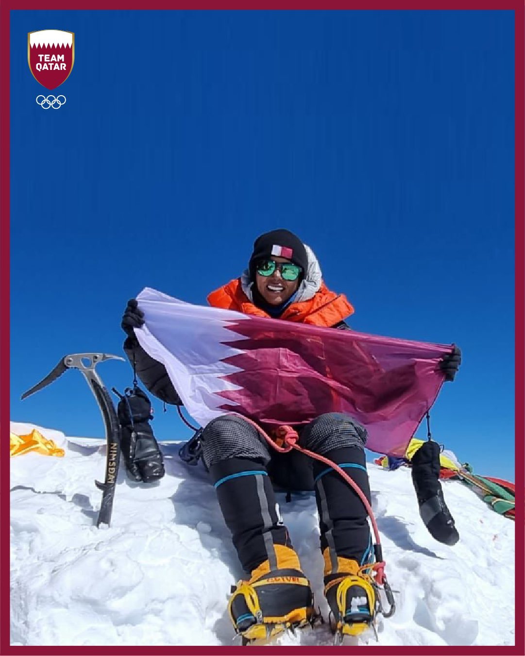 الشيخة أسماء آل ثاني ترفع علم قطر فوق سابع أعلى جبل في العالم