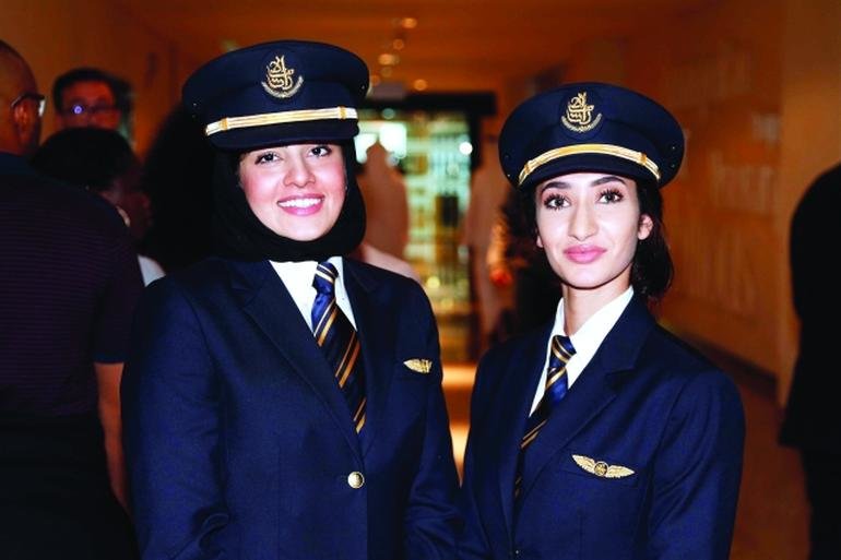 الحديث عن بخيتة المهيري وعلياء المهيري اللتين أصبحتا أول سيدتين تمثلان بلديهما حول العالم عبر طيران الإمارات على متن “بوينغ” و”إيرباص” بمسمى “ضابط أول طيار”.