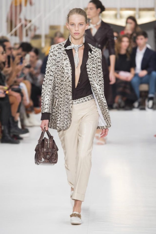 وقد لفتتنا في المجموعة أوشحة الساتان حول أعناق العارضات مع الشورتات والسترات الطويلة. وتم التركيز بشكل كبير على الأزياء المريحة والعصرية جدّاً بخاصة في تصاميم السراويل الفضفاضة والمطبوعة مع القمصان ذات القصّات الواسعة أحياناً على الأكمام. فضلاً عن ذلك، لفتنا كثيراً الحزام بحرف الـT على خصور العارضات في معطف الـTrench الجلدي وكأن الدار وضعت بصمتها إنما بطريقتها الخاصّة.