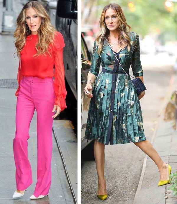 في المقابل وعلى طريقة سارة جيسيكا باركر، الجئي إلى الفساتين بالطول المتوسّط واختاريها بقصّة الـ Wrap على الخصر أو اختاري التنانير المنسدلة بالطول المتوسّط أو بقصّة الـ A Line ولا تخافي من الاقمشة المطبّعة وتحديداً بالأزهار فهي تضفي لمسة حيويّة. كذلك، التزمي فقط بالأحذية ذات العكب العالي التي تأتي مروّسة من الأمام وإن أردت ارتداء السراويل الجئي إلى القصّة الواسعة أو المستقيمة ولكن بخصرٍ عالٍ ولا تتردّدي في اعتماد موضة الـ Color Blocks إن كان جسمك رشيقاً طبعاً وإلا تمسّكي بالألوان المونوكروميّة فقط.