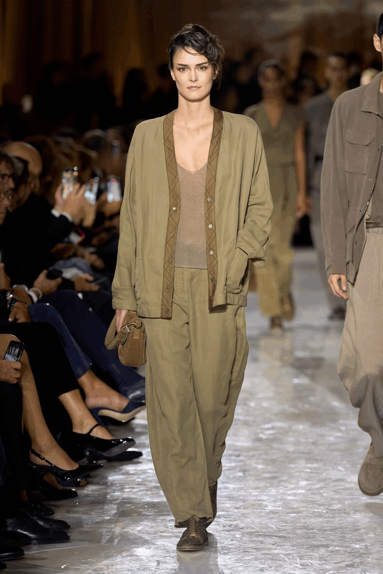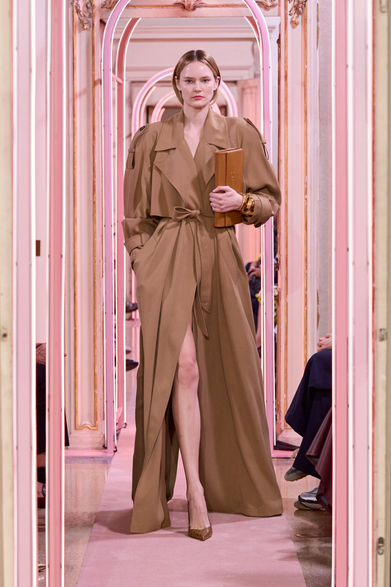 تتنوع القطع بين فساتين بتمايلات انسيابية وسراويل “كابري”، تنانير منخفضة الخصر، سترات مفصَّلة معاطف مزدوجة الأزرار بتطريزات تحاكي جلد النعام، ومعاطف ترنش فضفاضة تضيف لمسة جريئة.