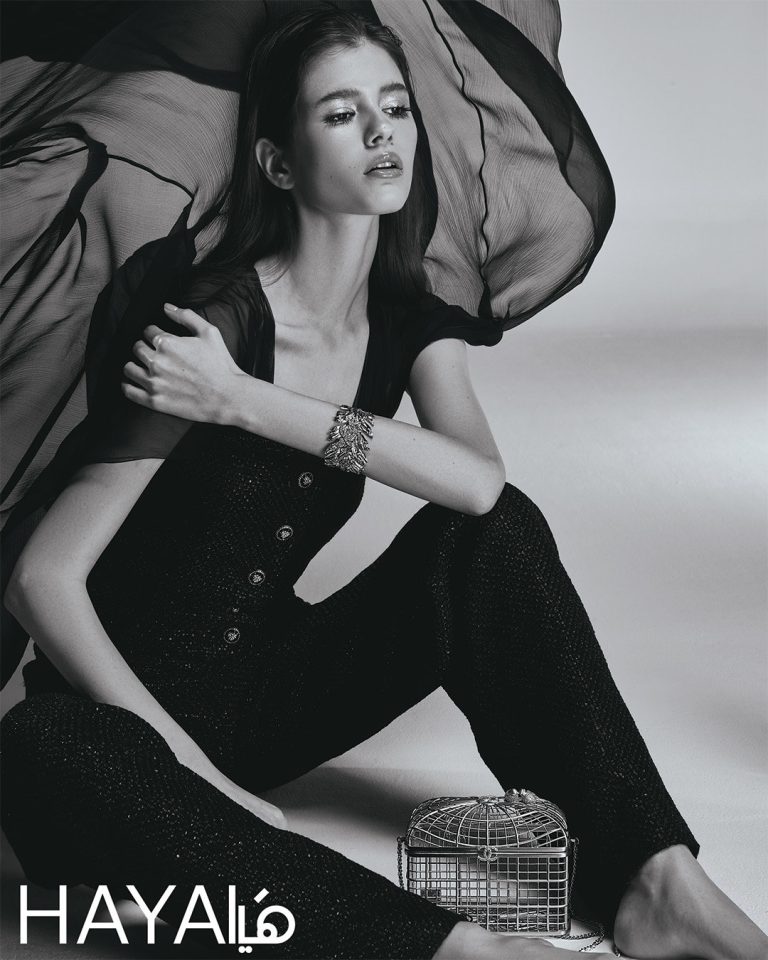 الصورة الرئيسية: جمبسوت وحقيبة وسوار من Chanel تصوير: Jeremy Zaessinger