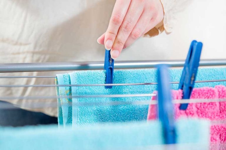 يقوم عدد كبير من النساء بتجفيف ونشر غسيل الملابس داخل