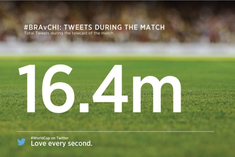 أعلنت شركة تويتر أن مبارة البرازيل وتشيلي الخاصة بكأس العالم
