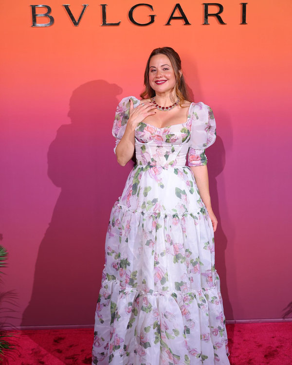 من ناحية أخرى، تألقت الممثلة المصرية منى زكي بفستان من Rasario من تنسيق سيدريك حداد وقلادة من دار Bvlgari كما علّقت على صورتها التي شاركتها مع جمهورها على صفحتها الخاصة على إنستغرام قائلةً:"ليلة ساحرة مع عائلتي الثانية Bvlgari في Eden The garden of wonders".
