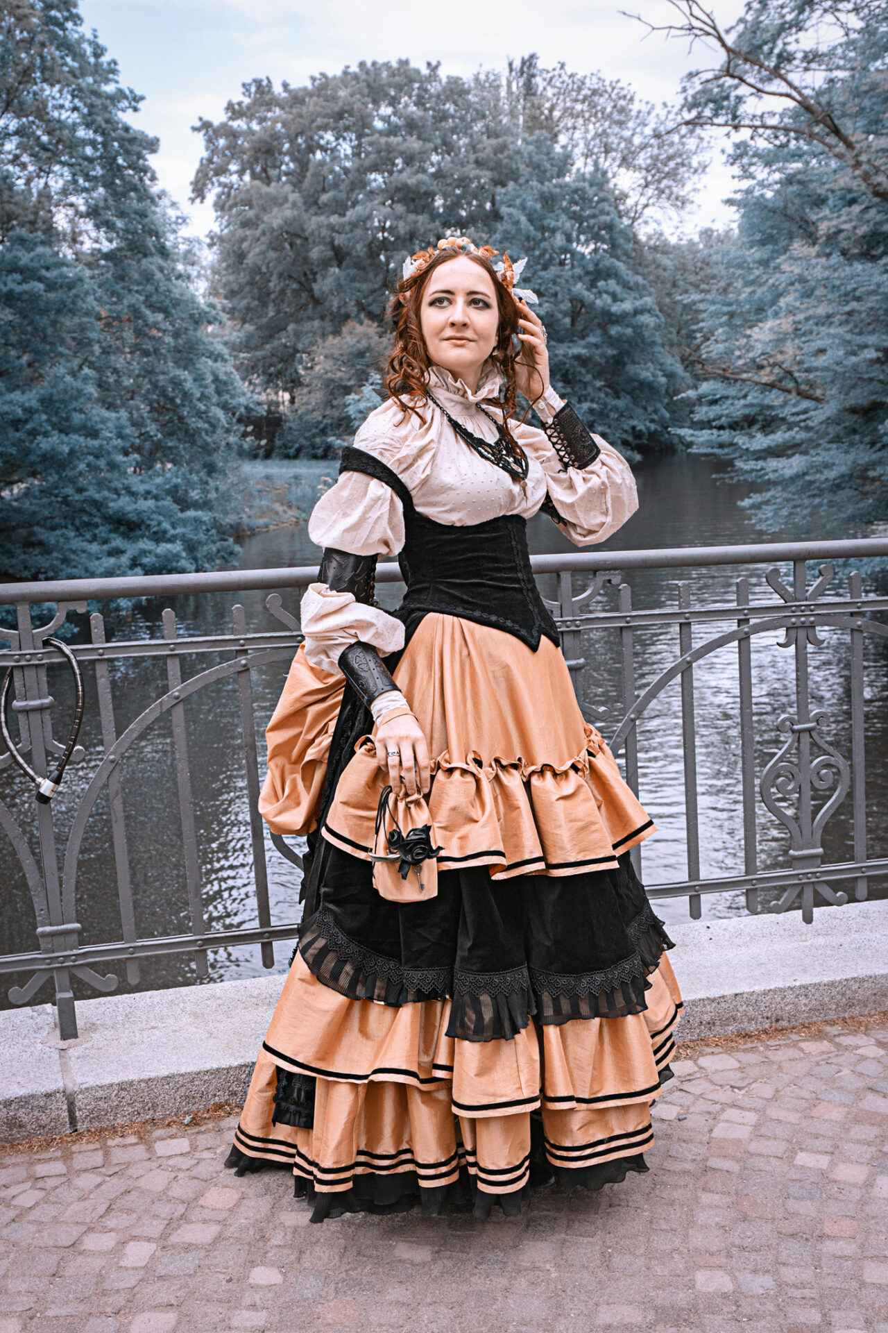 بحلول ستينيات القرن التاسع عشر، إزداد وسع عرض تنانير النساء كما يدت الفساتين مُزينة بشرائط ودانتيل وحرير مضفر. كان هذا مظهرًا من مظاهر ثراء الطبقة المتوسطة، حيث كانت كمية القماش الهائلة بمثابة إشارة للمجتمع بأن المرأة لا تستطيع ارتداء ملابسها إلا بمساعدة الخدم.