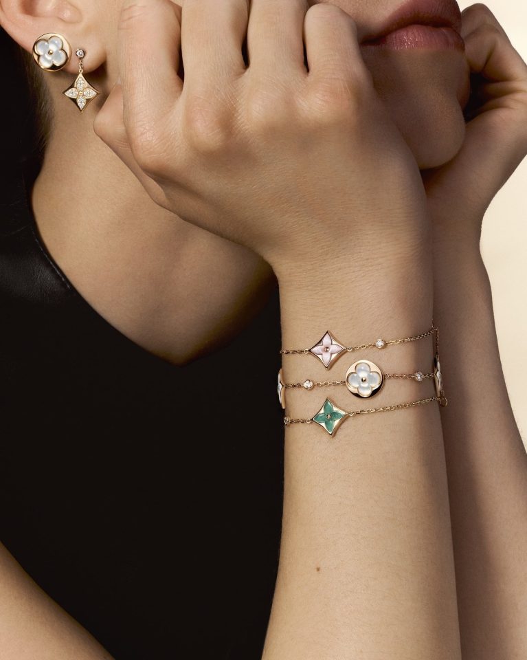 أضفى حجر الأمازونيت على مجموعة لويس فويتون Louis Vuitton لمسة مدللة جدًا بحيث يُعتبر هذا الحجر الكريم جديدًا على مجموعة Color Blossom.