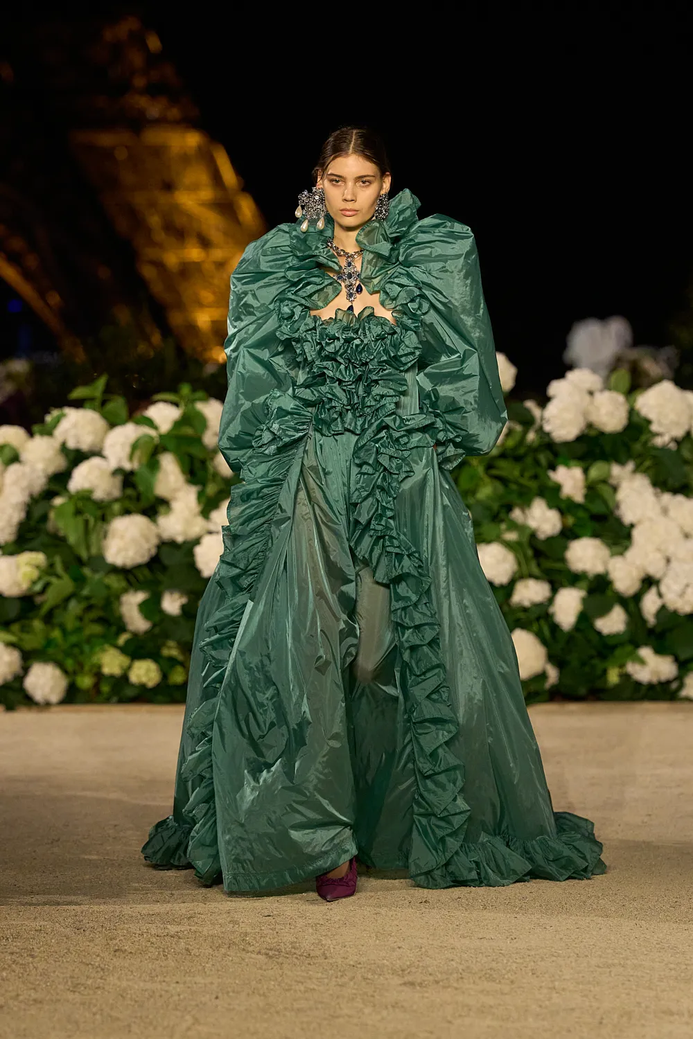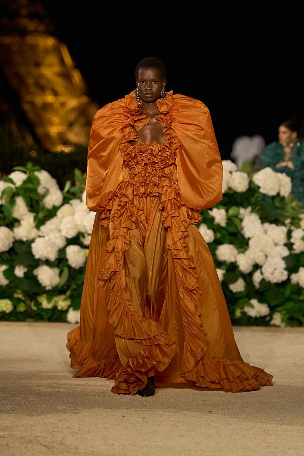 أما أبرز ما لفت الأنظار فهو اعتماد تصميم واحد لعدة فساتين مع تغيير بعض التفاصيل بالطبع، مما جعل هذا العرض بمثابة لوحة فنية!