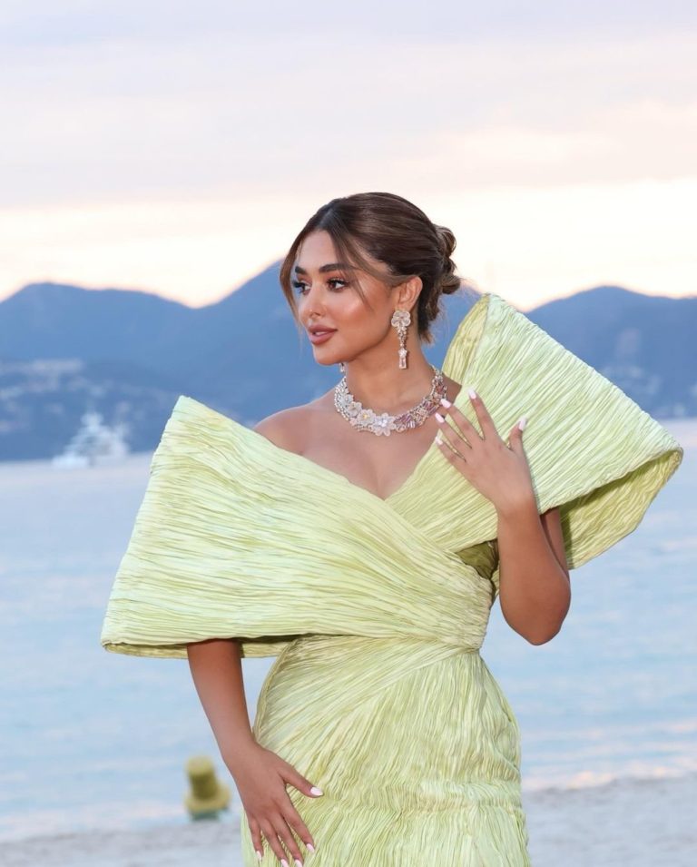 الصورة الرئيسية: ميلا الزهراني بفستان من Atelier Hekayat ومجوهرات Boucheron
