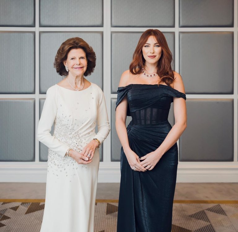 دانييلا رحمة تتألق بفستان أسود برفقة ملكة السويد في حفل عشاء Mentor Arabia