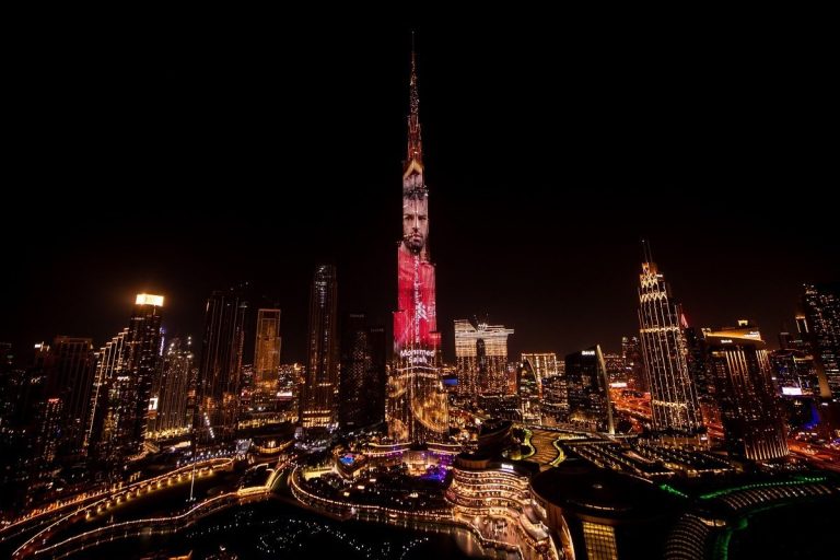 برج خليفة يُضاء بصورتي محمد صلاح و كريم بنزيما