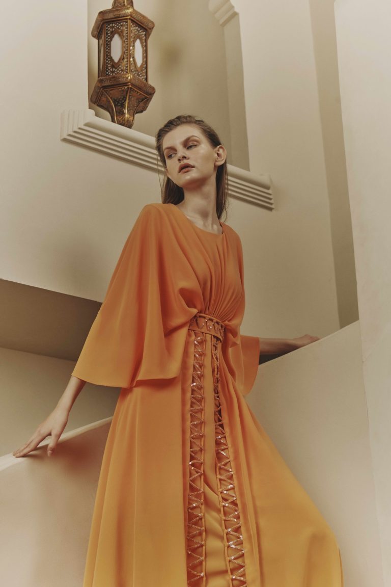أناقة أثيرية وأنوثة تجسّدهما زخارف دقيقة تزيّن قصّات انسيابيّة مصممة