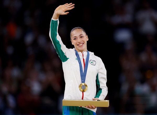 الجزائرية ‎ كيليا نمور تُحرز أول ميدالية ذهبية عربيًا في ألعاب باريس بحيث فازت في مسابقة الجمباز الفني.