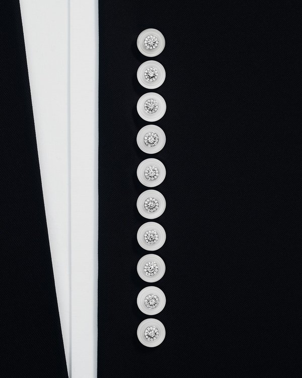 كتجسيد فاخر للأناقة، ابتكرت كلير شوان مجموعة مكوّنة من 15 زرّاً من الذهب الأبيض، كلّ منها يتألّق بترصيع من الألماس والكريستال الصخري. ويمكن تثبيت هذه الأزرار الأنيقة كزينة في الشعر، أو إدراجها في عروة الزرّ، أو تعليقها على ربطة العنق، مع إمكانية التزيّن بكلّ قطعة منفردة أو بالتنسيق مع قطع أخرى، ما يتيح إمكانيات تنسيق وترتيب لا حصر لها.