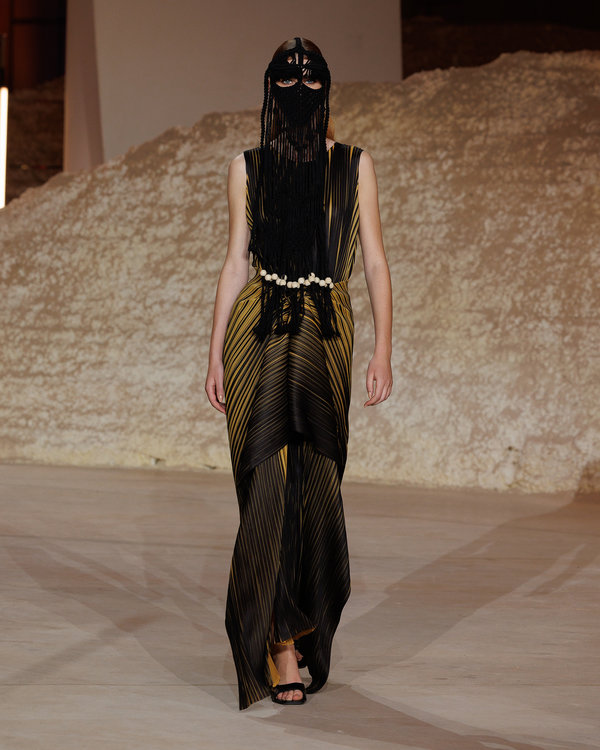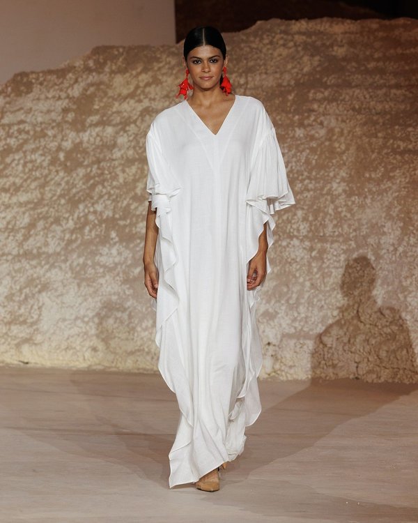 إختارت العلامة Yasmina Q الأقمشة المنسدلة في مجموعتها مع التركيز على التنانير والقفاطين حيث كانت القطع بسيطة وناعمة بعيدة كل البعض عن الأحجام والزخاريف.
