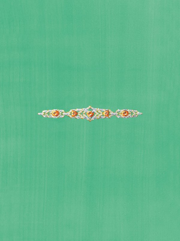 أبرز قطع مجموعة Allegoria من Gucci هو عقد الياقوت الأصفر عيار 78 قيراطًا المحاط بمجموعة من التورمالين والألماس إلى جابنب سوار من الذهب الأصفر عتيق الطراز مرصع بـ5 أحجار من العقيق اليوسفي مقطعة إلى ثلاثة أشكال مختلفة.