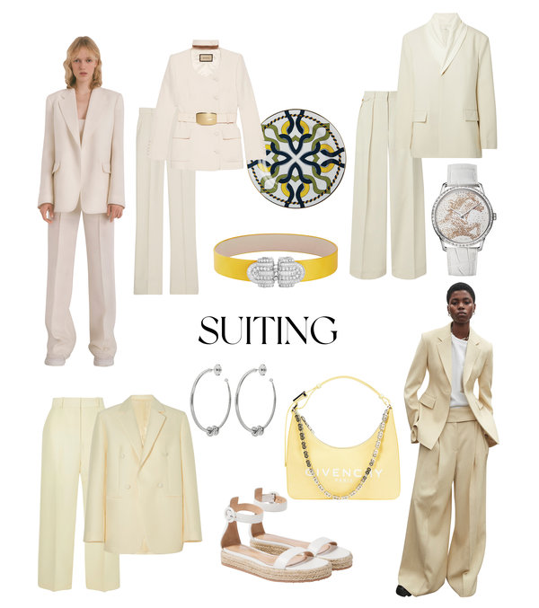 البدلة هي من أكثر القطع السهلة والمتعددة الارتداءات. ومع صيحة الملابس الواسعة التي تنتشر على مدارج عروض الأزياء، يكمن جمال البدلة في أنه يمكن ارتداؤها كطقم متكامل أو فصلها وتنسيق كل قطعة مع ملابس أخرى. اختاري بدلة Gucci إذا كنت تبحثين عن بدلة تنضح بالخلود والأناقة، وإذا كنت تبحثين عن بدلة ذات خصر أضيق، اختاري سترة مع حزام. وللحصول على جاذبية أكثر استرخاءً وأنيقة من دون عناء، اختاري سروال فضفاض وسترة كبيرة الحجم ومريحة من The Row لتلفتي الأنظار بإطلالة توازن تماماً بين الجمالية الجريئة والكلاسيكية.