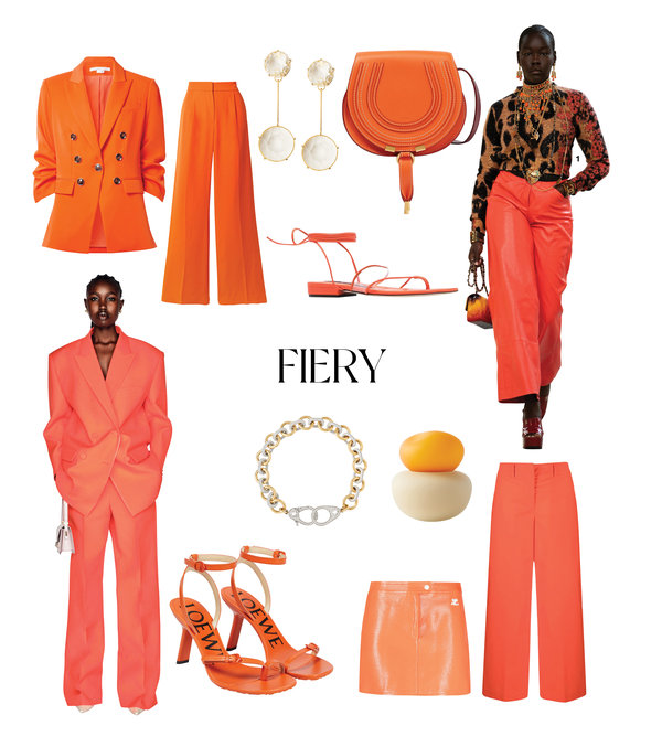 يضيف اللون البرتقالي الجريء لمسة نارية على خزانة ملابسك، وباستعماله ستصبح أي إطلالة لافتة للنظر. إنه بالتأكيد ظل مميز، ويمكن اعتماده في إطلالة موحدة اللون أو تنسيقه مع ألوان أخرى فاقعة مثل اللون الأرجواني والأزرق الملكي والأخضر للحصول على مظهر أكثر جرأة. وعند اختيار هذا الظل الصاخب، من الأفضل إقرانه بإكسسوارات بألوان محايدة لتكون الإطلالة متوازنة ولتجنب الإفراط بالألوان. وبعد أن رأينا هذا اللون في عروض أزياء Chanel و Valentino لموسم ما قبل الخريف 2023، لا شك في أن هذا اللون الناري لا بد من تواجده في إلى خزانة ملابسكِ هذا العام.